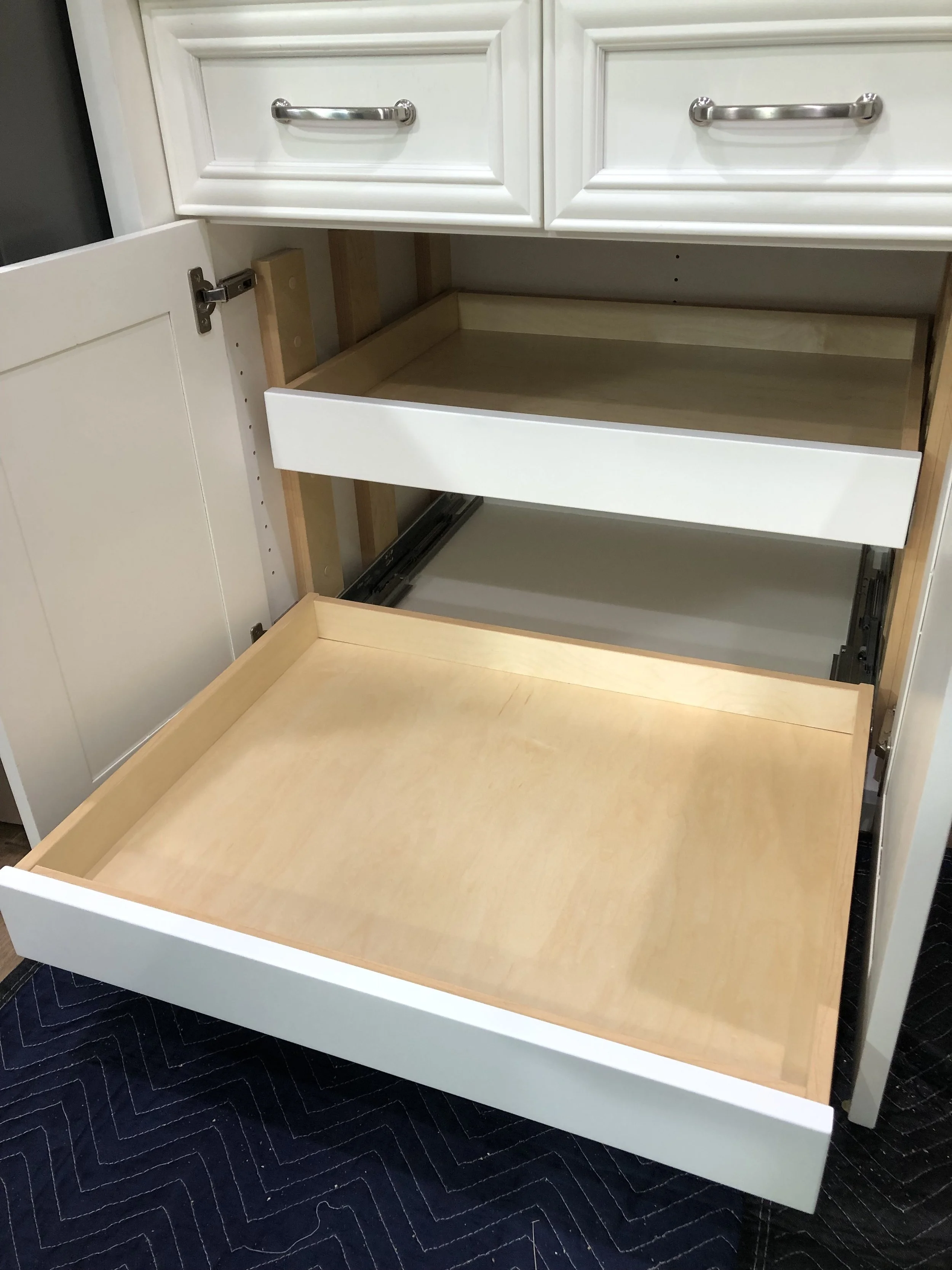 Do you have cabinets with adjustable shelves? Does it seem like that space is unusable? Are you tired of clearing out the entire shelf to get that one item in the back? Adding full extension drawers to your existing cabinets is a great and cost effective way to solve these problems.